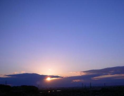 夜明けの雲間に僅かに滲む朱色に