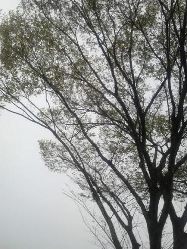 灰色のグラデーションの薄闇に静かな寝息を立てるように浮かび上がる木々のシルエット…