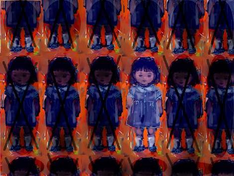 どういうことかといいますと、こういうことです。(青の人形群2段目から3段目)